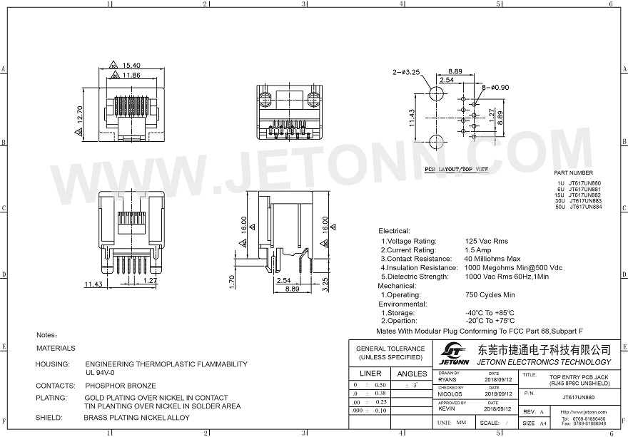 東莞市捷通電子科技有限公司 成立于2018年,是一家專業(yè)網(wǎng)絡(luò)通訊連接器及防水連接器制造商,主要從事連接器的研發(fā)、設(shè)計(jì)、生產(chǎn)、銷售以及模具開發(fā)等服務(wù)!