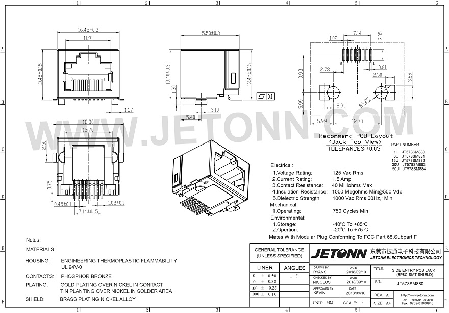 產(chǎn)品說明:本公司提供品質(zhì)高的RJ11、RJ12電話插接件、RJ45網(wǎng)絡(luò)插接件,耐環(huán)境RJ45防水連接器,防水電連接器及其它精密連接器,產(chǎn)品應(yīng)用于網(wǎng)絡(luò)通訊(電腦主板,網(wǎng)絡(luò)交換機,路由器,電信設(shè)備)、惡劣環(huán)境下數(shù)據(jù)傳輸與控制及電源信號傳輸與控制(視頻控制,戶外LED顯示屏、機器控制、工業(yè)程序控制等)