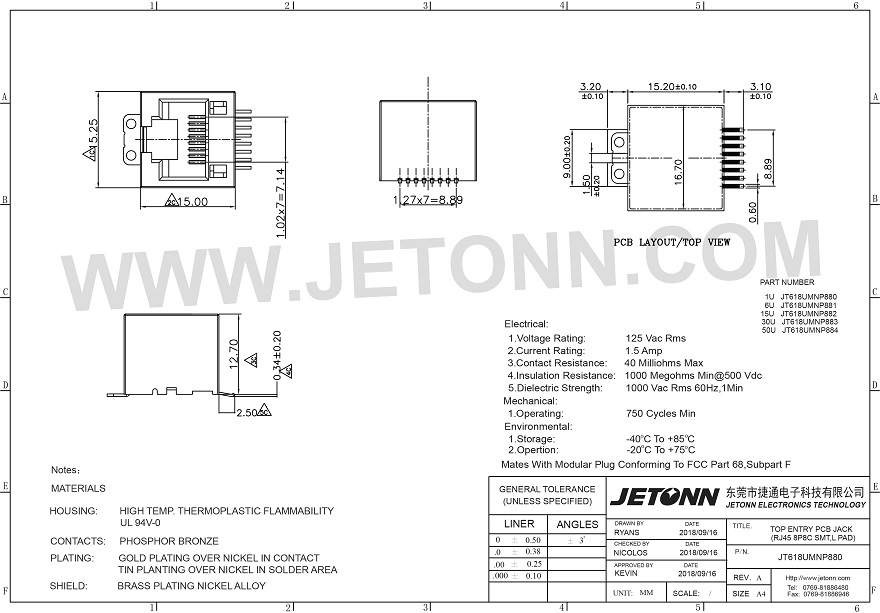 東莞市捷通電子科技有限公司 成立于2018年,是一家專業(yè)網(wǎng)絡(luò)通訊連接器及防水連接器制造商,主要從事連接器的研發(fā)、設(shè)計、生產(chǎn)、銷售以及模具開發(fā)等服務(wù)!