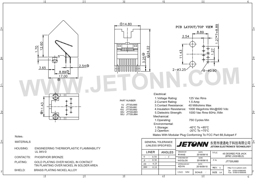 東莞市捷通電子科技有限公司 成立于2018年,是一家專業(yè)網(wǎng)絡(luò)通訊連接器及防水連接器制造商,主要從事連接器的研發(fā)、設(shè)計(jì)、生產(chǎn)、銷售以及模具開發(fā)等服務(wù)!