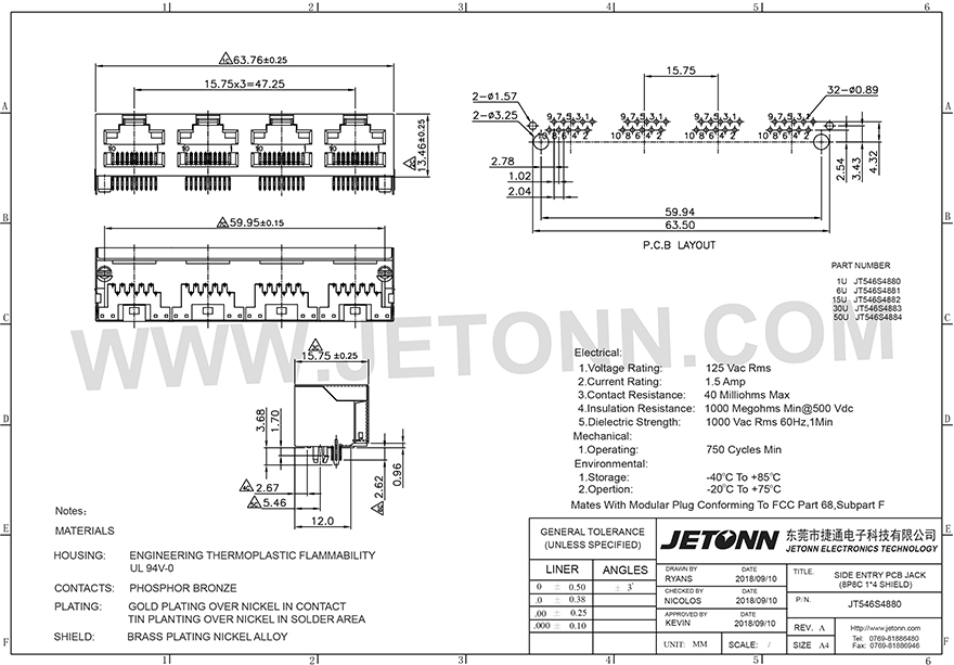 東莞市捷通電子科技有限公司主營四口屏蔽RJ45插座接口等其他它精密連接器,我司擁有專業(yè)的生產(chǎn)設(shè)備和技術(shù)型人才,我們堅持匠心品質(zhì),持續(xù)改進,為客戶提供滿意的產(chǎn)品,歡迎廣大客戶前來咨詢:0769-81886480