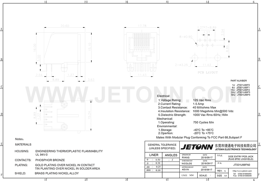 東莞市捷通電子科技有限公司 成立于2018年,是一家專業(yè)網(wǎng)絡(luò)通訊連接器及防水連接器制造商,主要從事連接器的研發(fā)、設(shè)計(jì)、生產(chǎn)、銷售以及模具開發(fā)等服務(wù)!