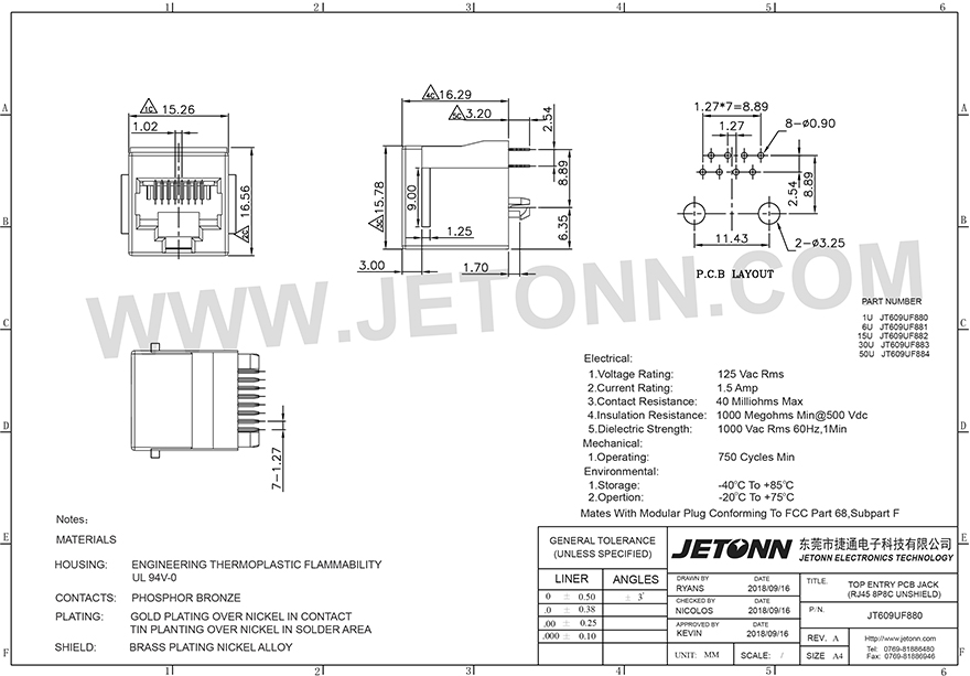 東莞市捷通電子科技有限公司 成立于2018年,是一家專(zhuān)業(yè)網(wǎng)絡(luò)通訊連接器及防水連接器制造商,主要從事連接器的研發(fā)、設(shè)計(jì)、生產(chǎn)、銷(xiāo)售以及模具開(kāi)發(fā)等服務(wù)!
